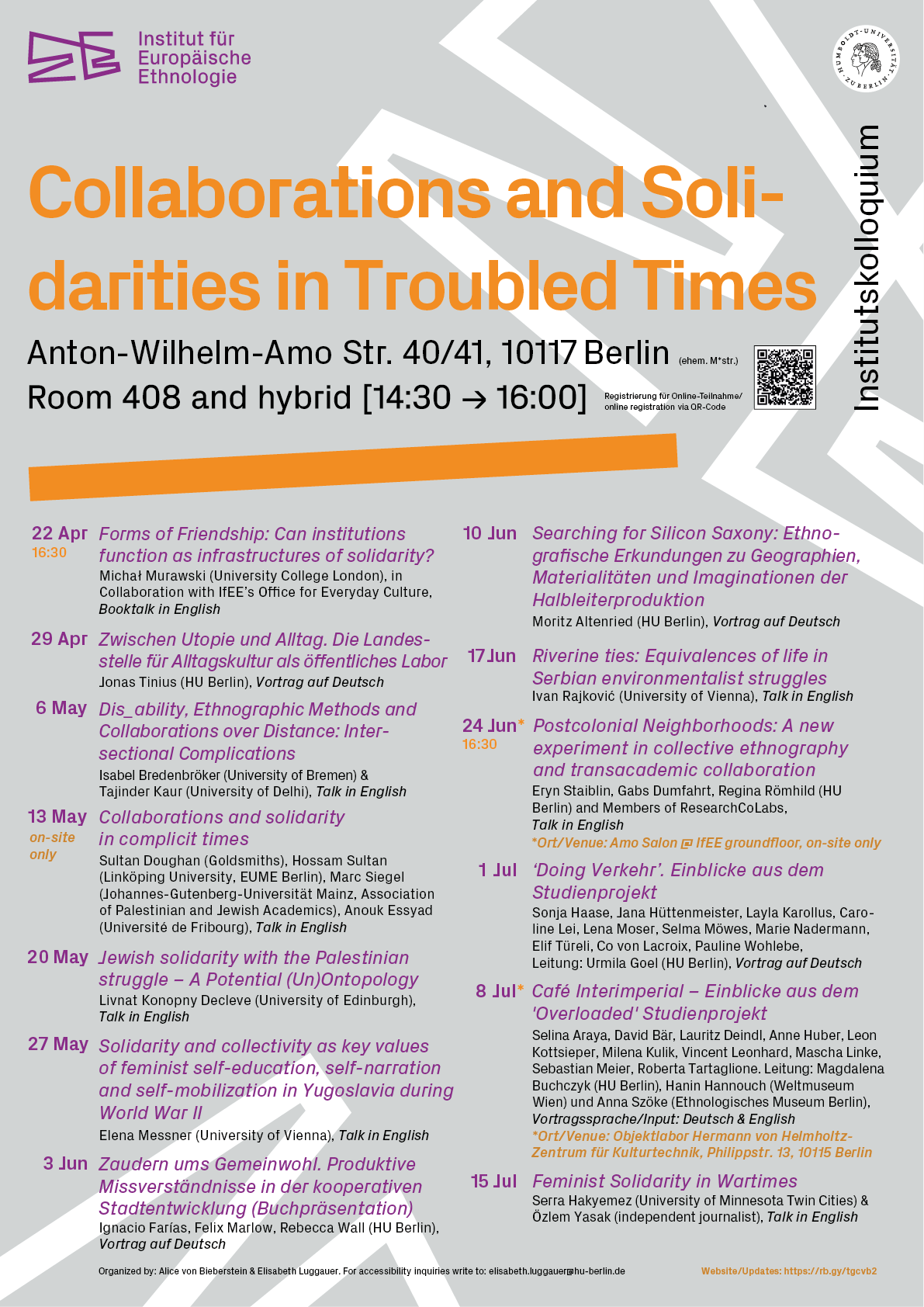 Location: Institute of European Ethnology, Anton-Wilhelm-Amo-Str. 40/41 (formerly Møhrenstr.), Room 408.
