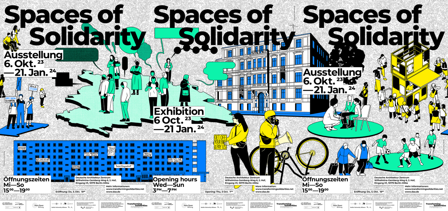 Ein solidarisches Miteinander im Kontext wachsender sozialer Ungleichheit ist dringlicher denn je. Mit der Ausstellung Spaces of Solidarity versammelt die Forschungsgruppe Transforming Solidarities Berliner Projekte aus den Bereichen Wohnen, Arbeit und Gesundheit, die aufzeigen, welche solidarische Zukunft möglich ist. Einige dieser Projekte waren mit dem mobilen Kiosk der Solidarität als temporäre urbane Intervention in Berlin unterwegs und wurden im Sommer 2023 wissenschaftlich begleitet.