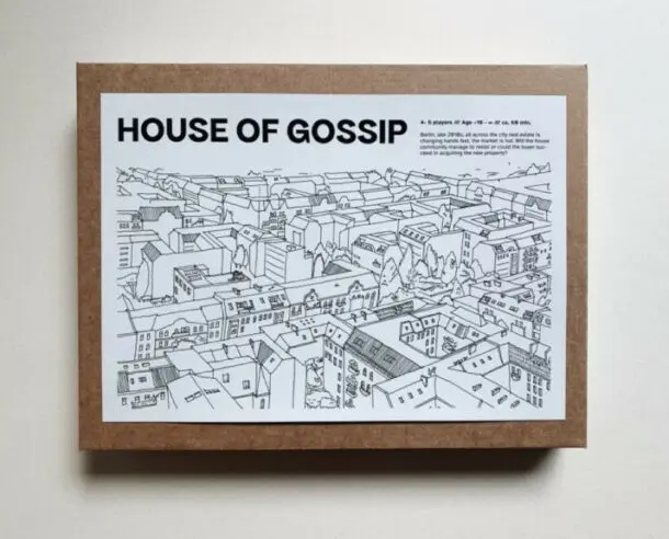 In a process where no one can be certain about anything, gossip abounds: In the game you will have to gather infor- mation form alliances and find your way to save (as resi- dents) or buy (as the buyer) the house! Think twice about who and when you want to share your information with!
